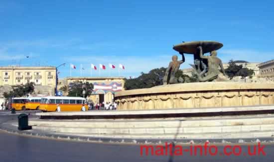 Valletta's bus station is the hub for bus transport on Malta. Although called Valletta's bus station, the bus station is located just out side City gate in Valletta's City walls and actually located in Floriana. The bus station is next to a very wide roundabout with the Triton Fountain in it's centre