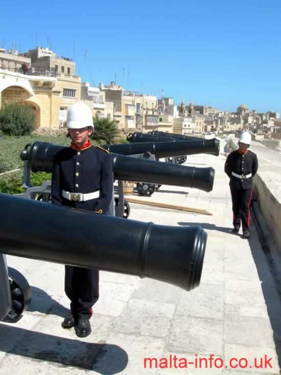 Noon-day Gun fired from the Gun Saluting Battery which is locate one level below and slightly in front of the Upper Barrakka Gardens where you can obtain a free brilliant view of this daily ceremony. For a closer view then descend to the Gun Saluting Battery for a small fee.