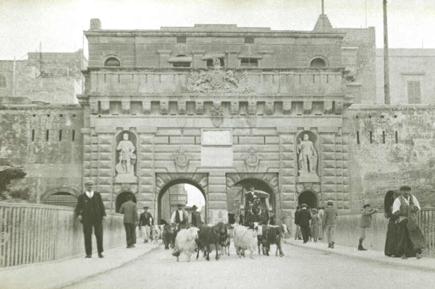 The current Gate, the fourth to be built was erected in 1964, but generally was not liked by the Maltese public. The previous gate (Black & white photo) built in 1853 by the British looked far more impressive and called the Porta Reale (Kingsway)