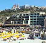 Mellieha Bay hotel is set on seven acres of beautifully landscaped and well tended gardens, on the waterfront of Malta's largest bay, and with it's own sandy beach and lido. It is a large hotel in a secluded spot with a magnificent views of the bay and the nearby village of Mellieha. This is a large hotel with 313 air conditioned bedrooms all sea facing