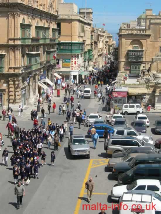 Republic Street, Valletta Main Street is behind the old British Built City Gate Two later gates have been built